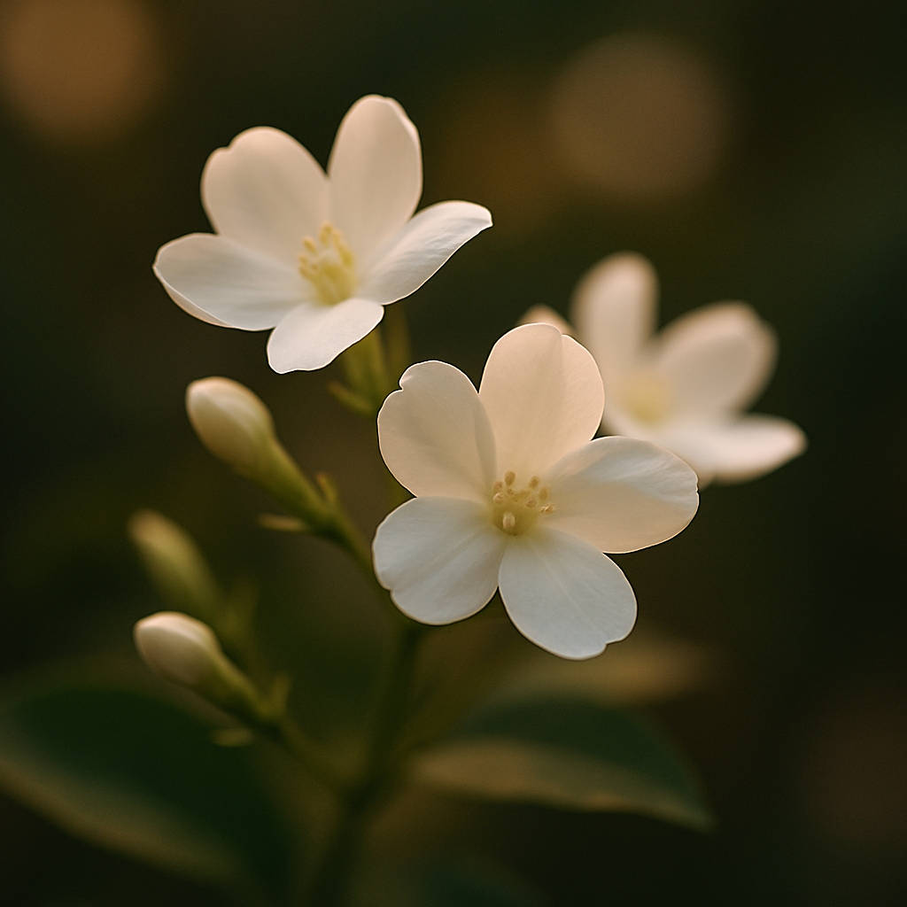 Fresh jasmine blossoms handpicked at dawn for calming aroma blends